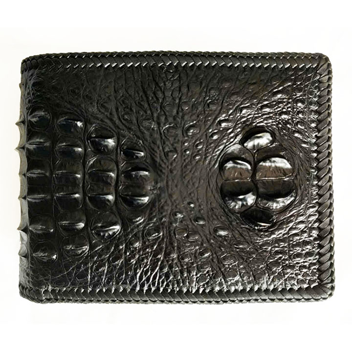 Bóp Da Cá Sấu Hoa Cà Nguyên Con Đan Viền Da Đen D1141
