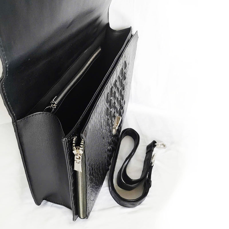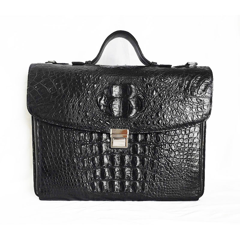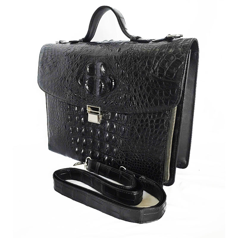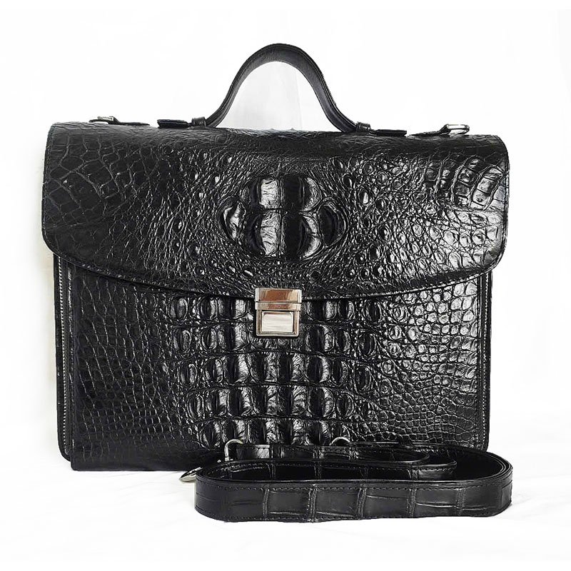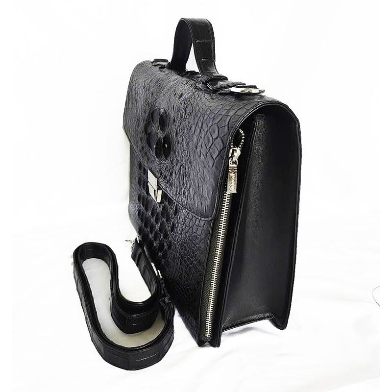 Túi Xách Da Cá Sấu Nam Hoa Cà 0159 – Da Gai Màu Đen Sang Trọng
